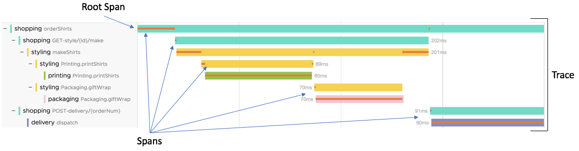 (Operations)。一个 Span (跨度) 代表一个函数调用或一次 RPC。如