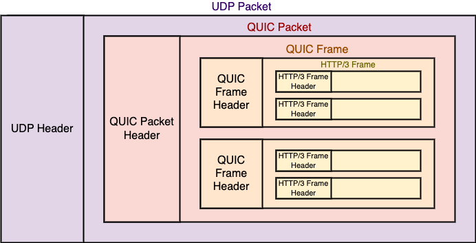 - 底层实现:QUIC 数据包(Packet)是传输单元,Frame 是逻辑单元。一个 Packet 可以承载属于 Stream A 的 Frame 和属于 Stream B 的 Frame。