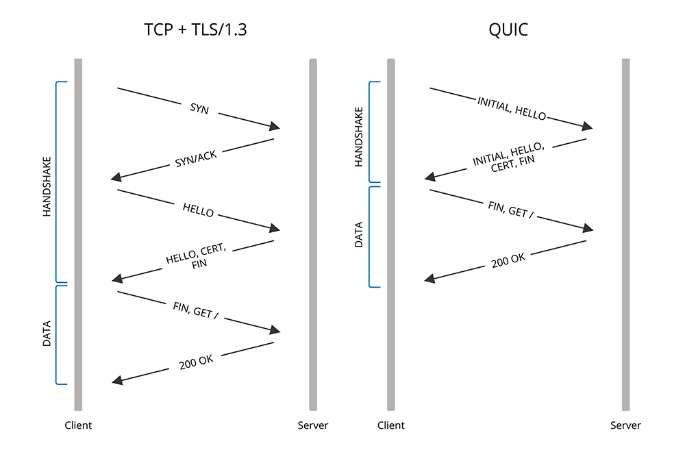 QUIC 深度集成了 TLS 1.3,将传输层握手与加密握手合并。