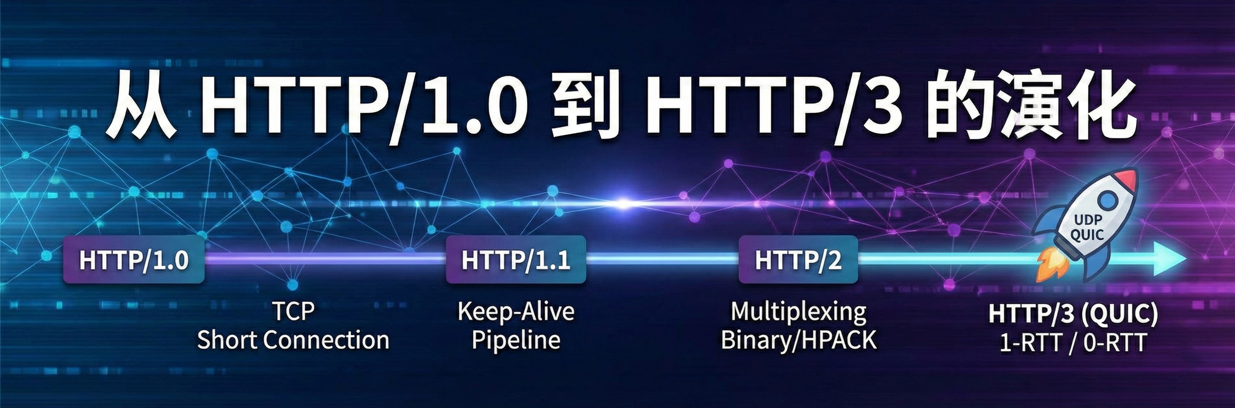 回顾从 HTTP/1.0 到 HTTP/3 的二十多年演进历程,我们可以清晰地看到,推动 Web 协议不断升级的核心动力,始终是为了提供更快、更稳、更安全的网络体验。这是一部与网络延迟、带宽限制和计算成本进行持续抗争的历史。