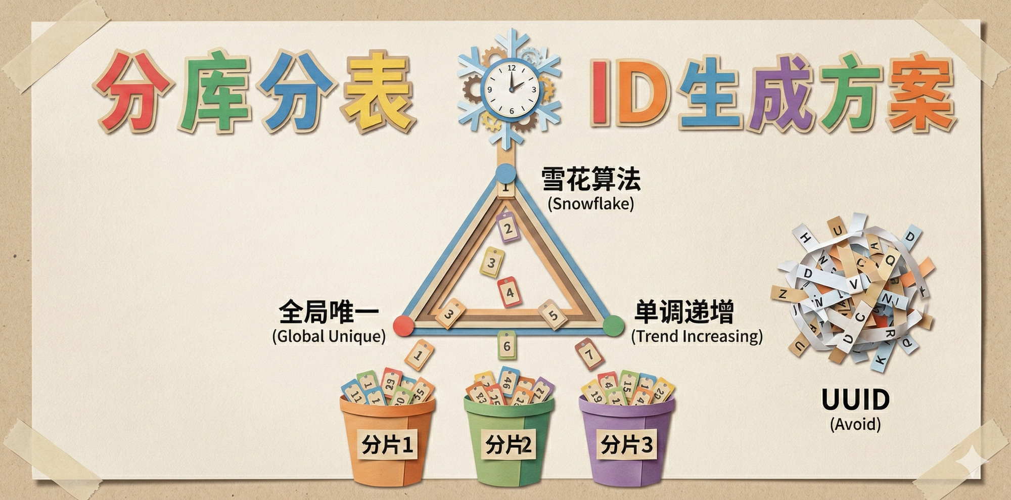 要彻底掌握分库分表环境下的 ID 生成方案,不能只背诵"雪花算法"的配置,而必须从数据库底层原理(B+ 树)和分布式系统的 CAP 定理出发,建立一套完整的评估体系。
