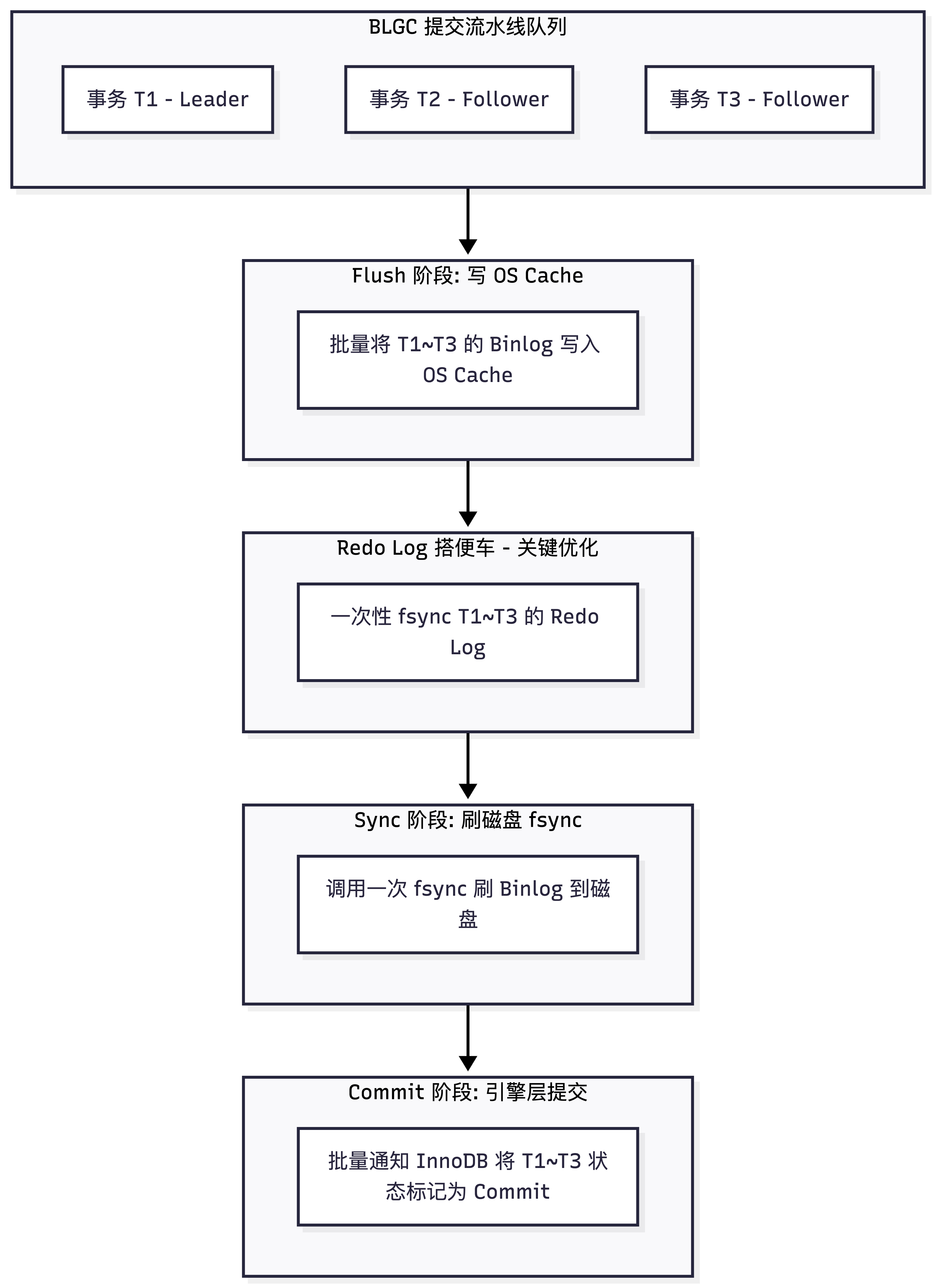 MySQL 5.6 引入了 BLGC,将提交过程设计成一个流水线。