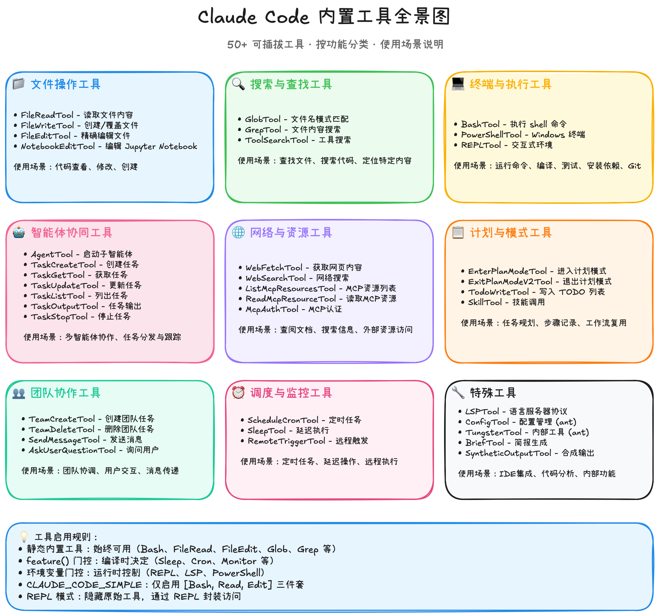 - Claude Code内置了哪些工具,以支撑它如此灵活地完成各种各样的任务?工具体系又是如何搭建的?