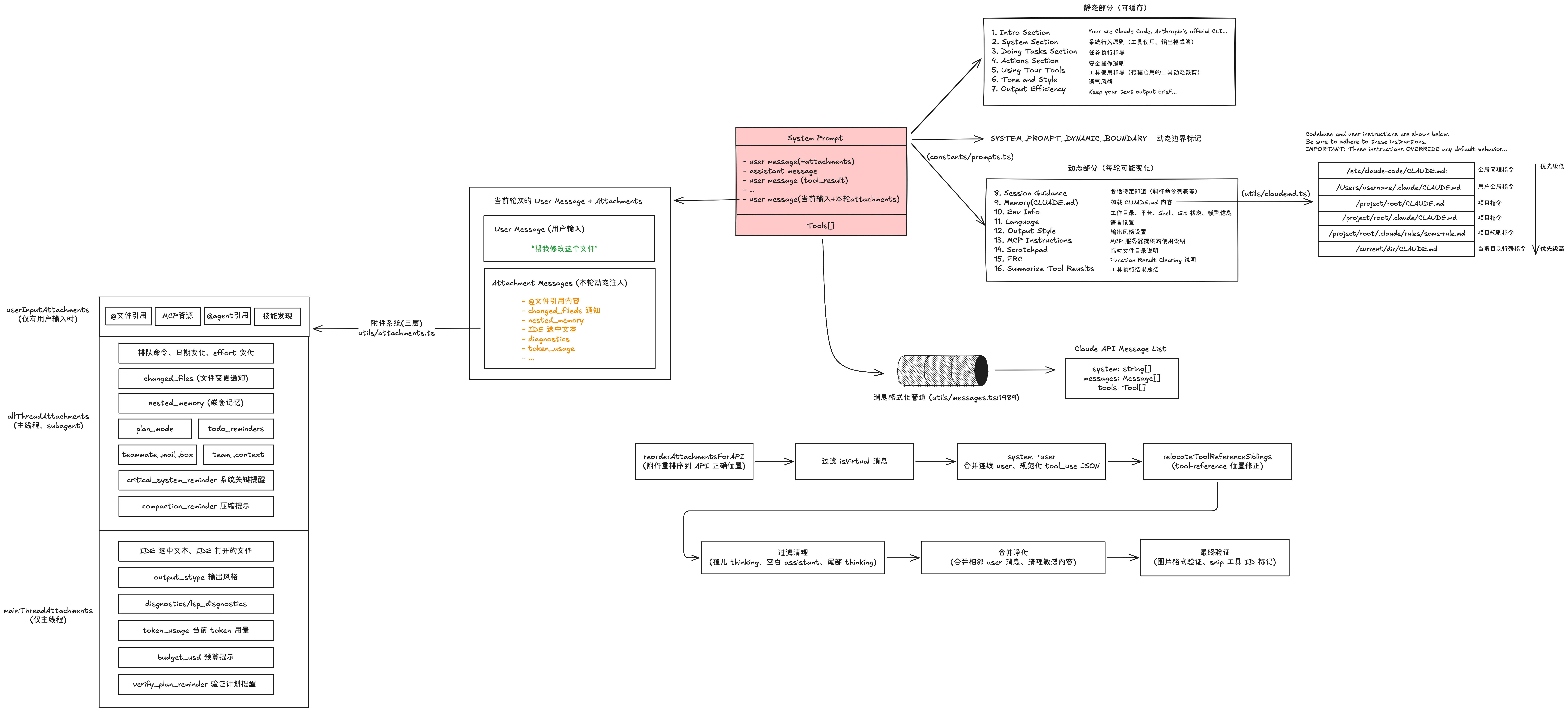 如上图所示,附件系统是 Claude Code 的核心设计之一,实现在