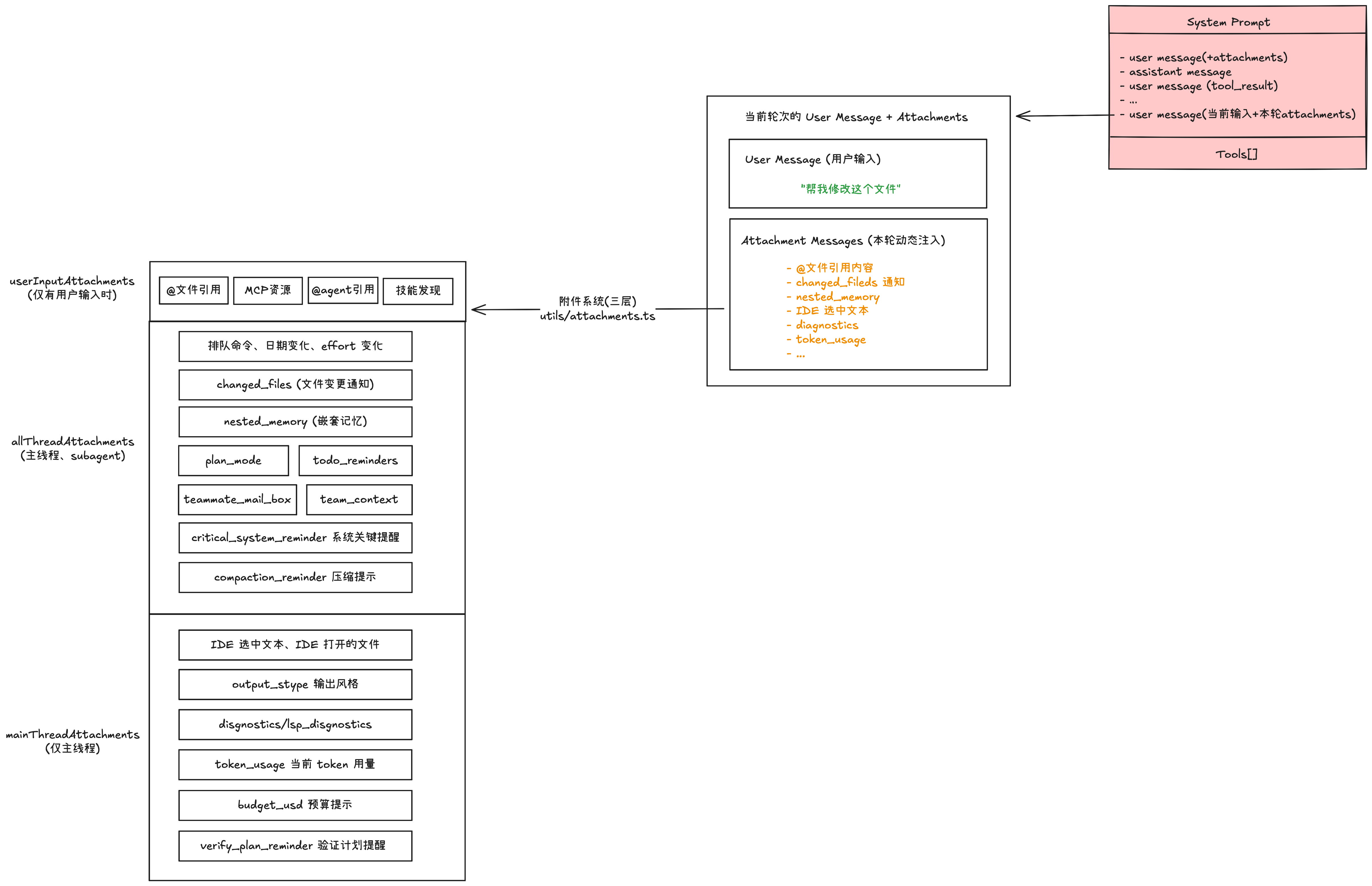 - Attachment Messages(本轮附加注入):系统自动生成的上下文信息