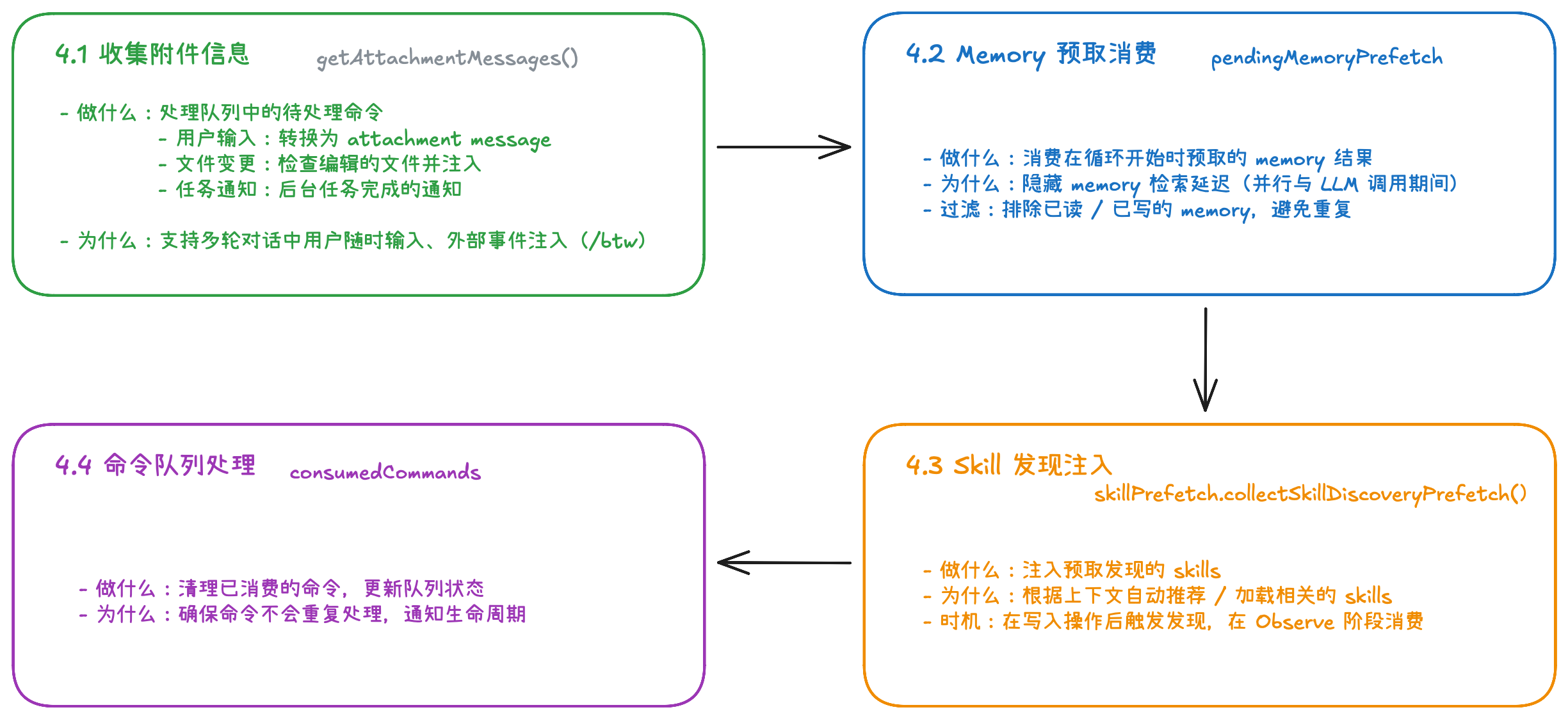 | allThreadAttachments | 每轮都收集(含子 agent) | 文件变更、日期变化、记忆、plan、任务提醒 | 维护全局一致性 |