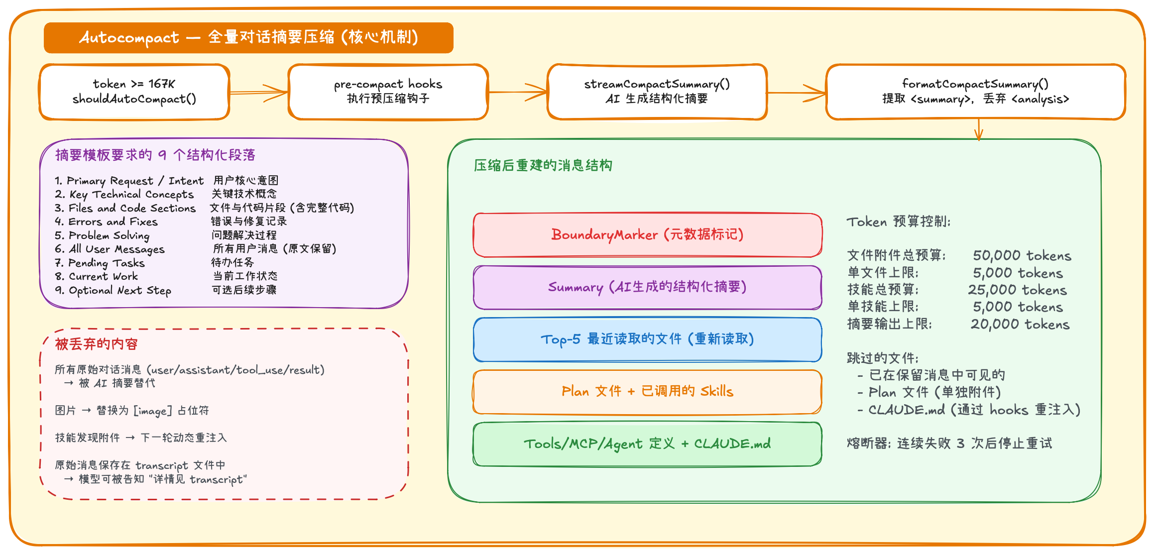 "Auto-compact is enabled. There is no need to stop or rush — you have unlimited context." | 长对话中模型"感知"到 context 快满 → 表现出焦虑行为(提前总结、催促用户) |